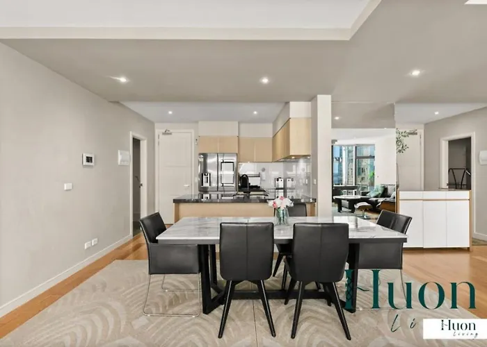 El Penthouse Style 4Brmx4Bath Apt Melburne está situado a poco más de 15 minutos a pie del Teatro Regent, en el barrio central de negocios de Melbourne, y acoge a sus huéspedes con una sauna. Situado a una distancia moderada del Centro comercial Emporium Melbourne, este apartamento de 180 m^2 ofrece una piscina para que los huéspedes puedan disfrutar.